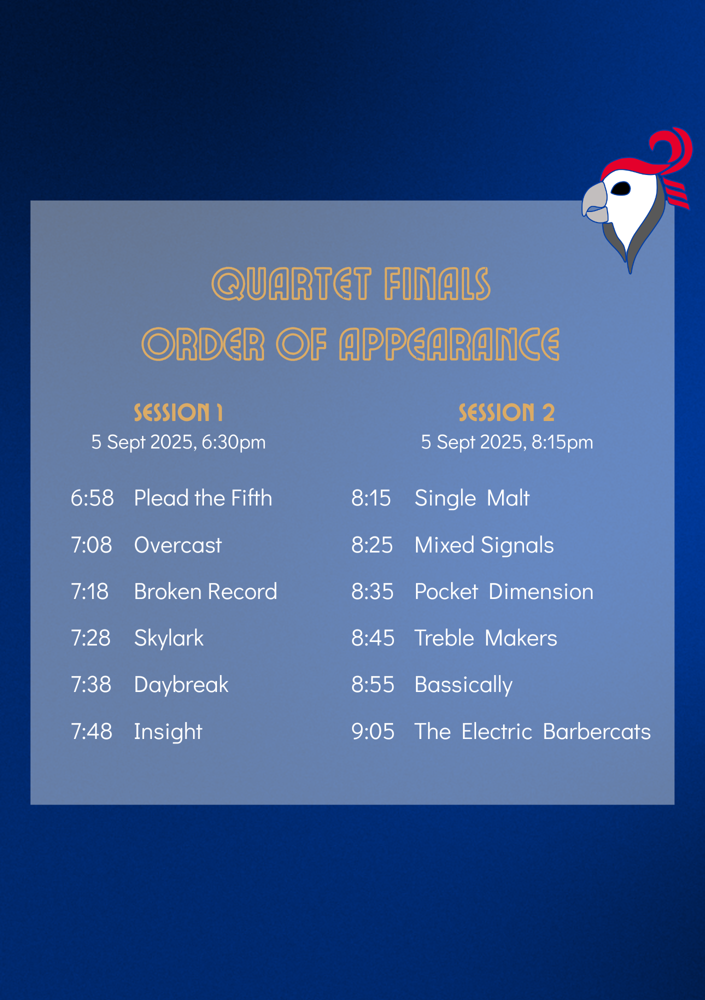 This year we will be running an Open Quartet Contest, as well as a Senior's Quartet Contest!